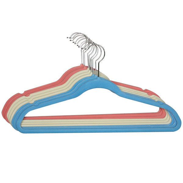 ズレ防止 子供用スリムハンガーで、狭いクローゼットでも収納スッキリ!とっても丈夫な10本組! u 洋服が滑らないハンガーです u ベルベット風の表面がお洋服をしっかりとキャッチ u 洋服がタンスの中に落ちてシワ